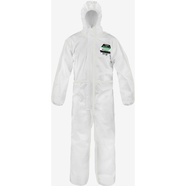 Coverall . Microporeus filmlaminaatweefsel met gestikte en getapete naden voor betere bescherming tegen Type 4 - Toevoeging van getapete naden aan MicroMax® NS overall - lichtgewicht en flexibele overall voor zwaardere Type 4 sprays van vloeistoffen. - Stof doorstaat alle tests in de EN 14126 norm voor besmettelijke agentia. Door de toevoeging van getapete naden is MicroMax® TS geschikt voor veel medische, farmaceutische en biologische toepassingen. - Zacht en flexibel microporeus filmlaminaat van hoge kwaliteit biedt een uitstekende combinatie van bescherming en comfort. - Door de hoge vochtdoorlaatbaarheid kan damp ontsnappen om het comfort te behouden. - Lakeland "Super-B" ergonomische styling - unieke combinatie van drie ontwerpelementen voor optimale pasvorm, duurzaamheid en bewegingsvrijheid. - Driedelige capuchon voor een rondere hoofdvorm en meer comfort. - Ingezette mouwen - torso gevormd naar het lichaam om bewegingsvrijheid te mazimiseren en duimlussen overbodig te maken. - Kruissingels uit twee delen - voor meer bewegingsvrijheid en minder scheuren in het kruis. Conform : EN 1149-5 EN 14126